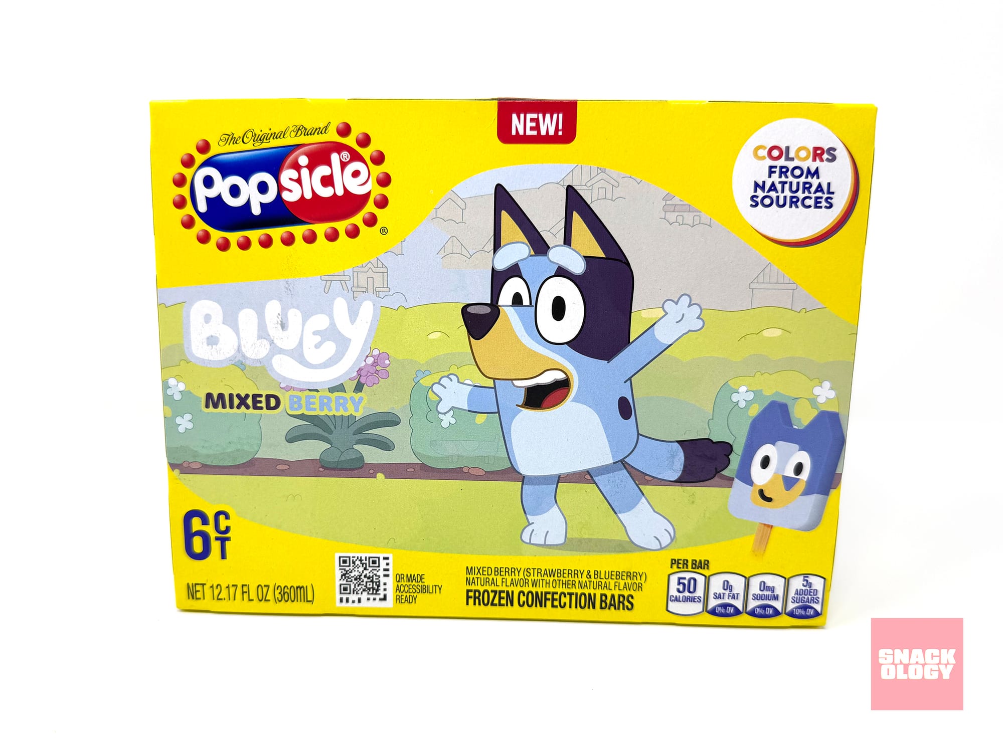 It’s been a long time since I had what Popsicle officially calls a “frozen confection bar.” The texture of the Bluey Popsicles sit somewhere between your traditional Popsicle and an ice cream bar, delivering fruit flavor (in Bluey’s case, Mixed Berry) and a more solid bite.