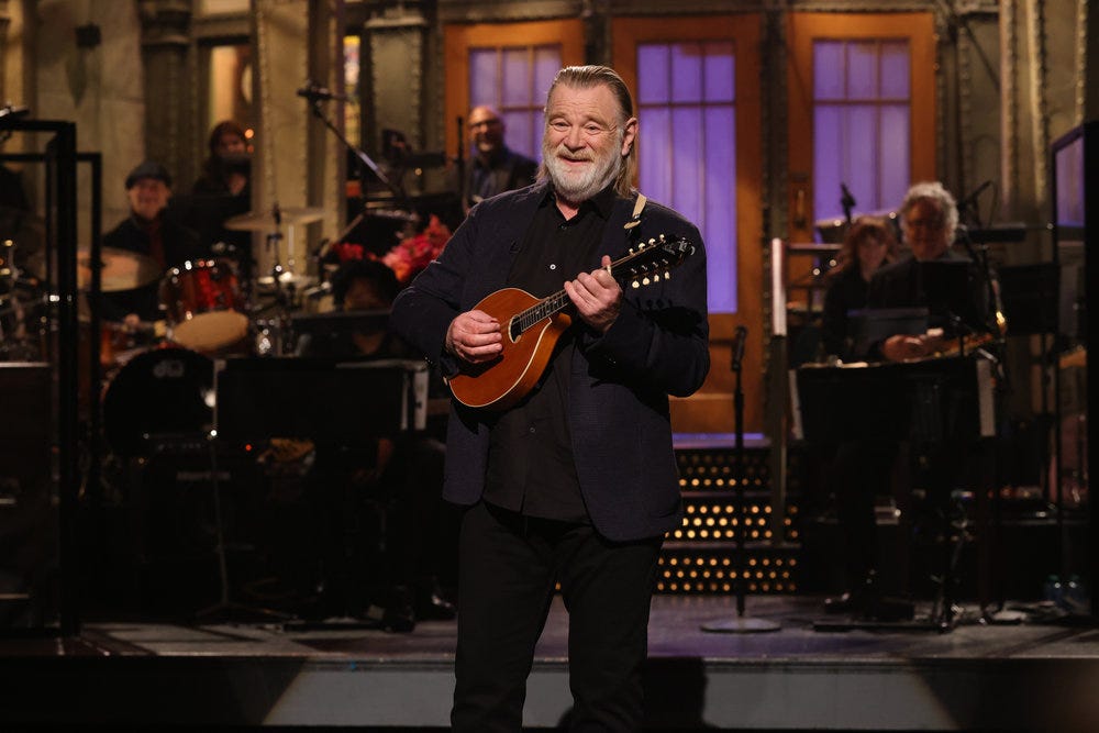 When Brendan Gleeson was announced as the host of the Oct. 8 episode, I spent at least a week thinking it was his son, Domhnall Gleeson, hosting. You’ll imagine my surprise when the promos for the episode hit the Internet and it was one of the stars of The Banshees of Inisherin on stage.