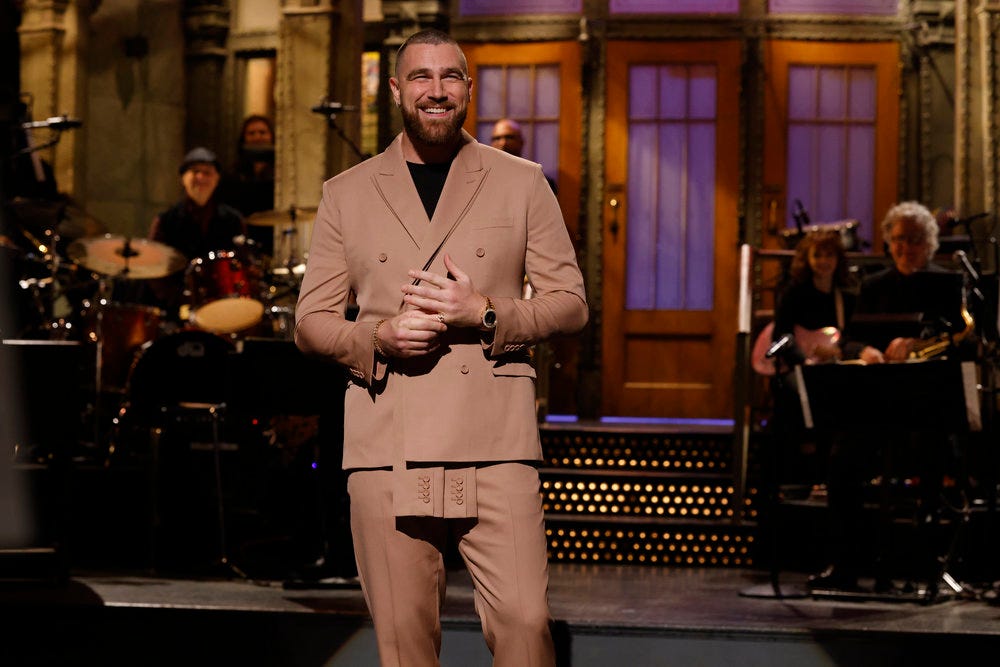 I didn’t want to like this episode. I’ve had to watch Travis Kelce help his Kansas City Chiefs end the Buffalo Bills’ playoff hopes too many times. The guy was very good, though. The writers crafted an episode tailored to Kelce’s strengths, playing against his size with the “American Girl Café” sketch and playing into with his Please Don’t Destroy character.
