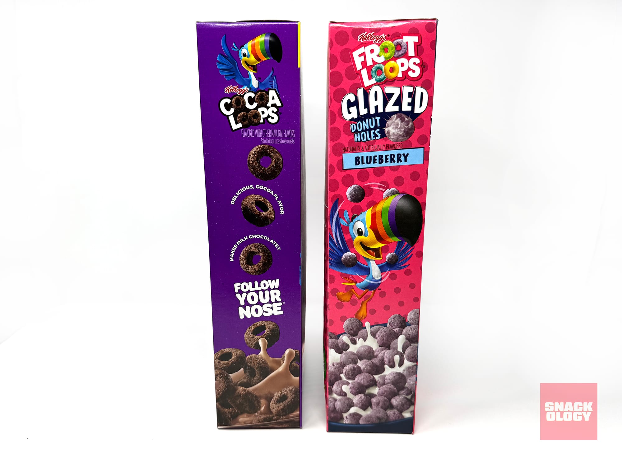 Which brings us Cocoa Loops and Froot Loops Glazed Blueberry Donut Holes, two new takes on Froot Loops that you can now find in the cereal aisle.