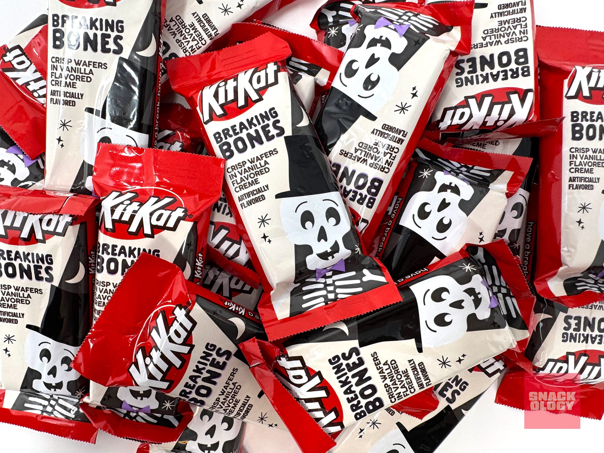 My thoughts: Kit Kat Breaking Bones aren’t new this year, but they’re a hit with our daughter so they made the cut for Snackology’s Halloween roundup. I enjoy this flavor of Kit Kat, but I always forget that they’re not coated in white chocolate. Instead, it’s “vanilla flavored creme.” I wish Kit Kat would take a page from Crunch’s notebook and commit to making these white chocolate. (Halloween Kit Kats are also available in the cinnamon toast-flavored Ghost Toast and marshmallow creme-coasted Witch’s Brew flavors.)