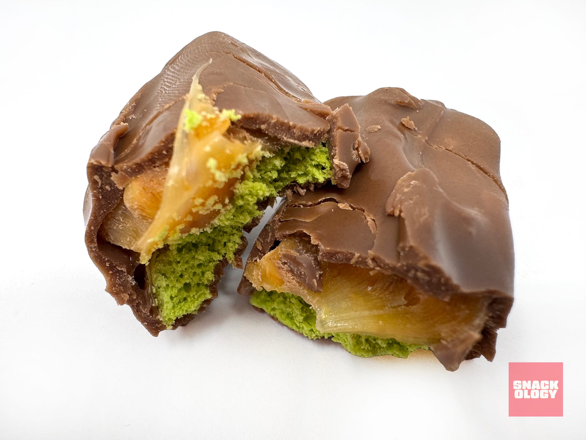 But, no, these seasonal candy bars aren’t filled with kadayif and a pistachio-tahini cream. You would never describe the filling in a Dubai chocolate bar as “ectoplasmic green.” But that’s exactly how Twix’s cookie layer and Snickers’ nougat layer are described in these spooky mini candy bars.