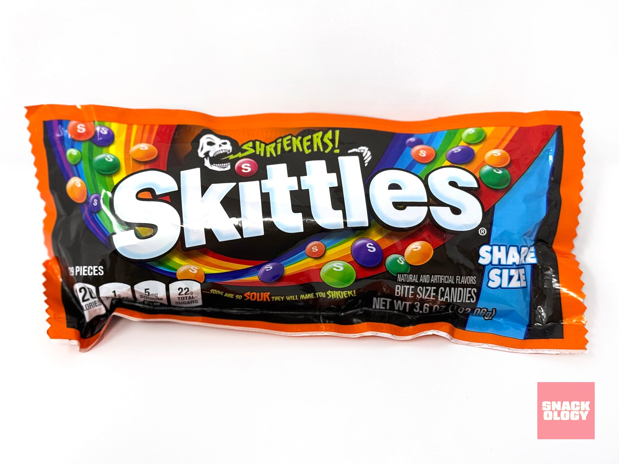 My thoughts: There’s a chance I’ve completely misunderstood what Skittles Shriekers are supposed to be about, but I failed to find a single Skittles in this bag that was “so sour [it] will make me shriek!” (The exclamation point is part of the slogan.) Are some of the flavors — Rattled Raspberry, Ghoulish Green Apple, Spine-tingling Tangerine, Citrus Scream and Shocking Lime — a touch more sour than others? Sure. But none of them made me, um, shriek. They are a tasty mixture of Skittles, though.