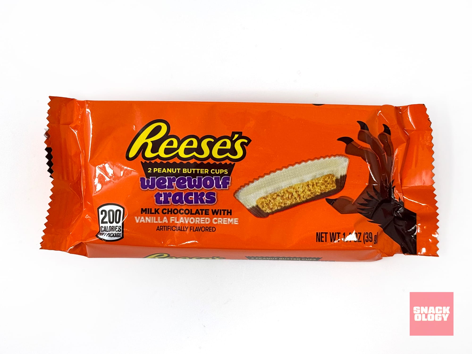 My thoughts: Like with Kit Kat Breaking Bones, Reese’s Werewolf Tracks are not topped with white chocolate. This is once again “vanilla flavored creme,” a popular element in candy that I just can’t fully place. If you find yourself tempted to buy Reese’s Werewolf Tracks, do yourself a favor and pick up the infinitely superior Oreo Reese’s Cups instead.