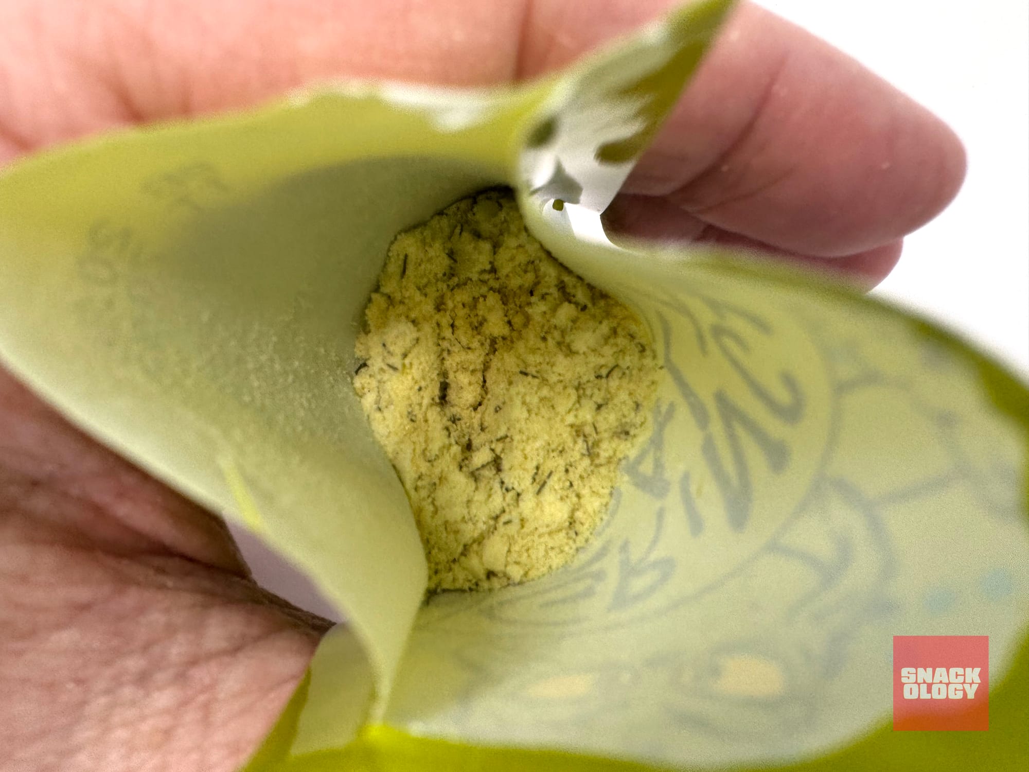 Inside the packet is a powdery mixture that packs a wallop of the promised dill pickle smell. You have no idea how careful I was opening and photographing my packet of Grinch Salt.