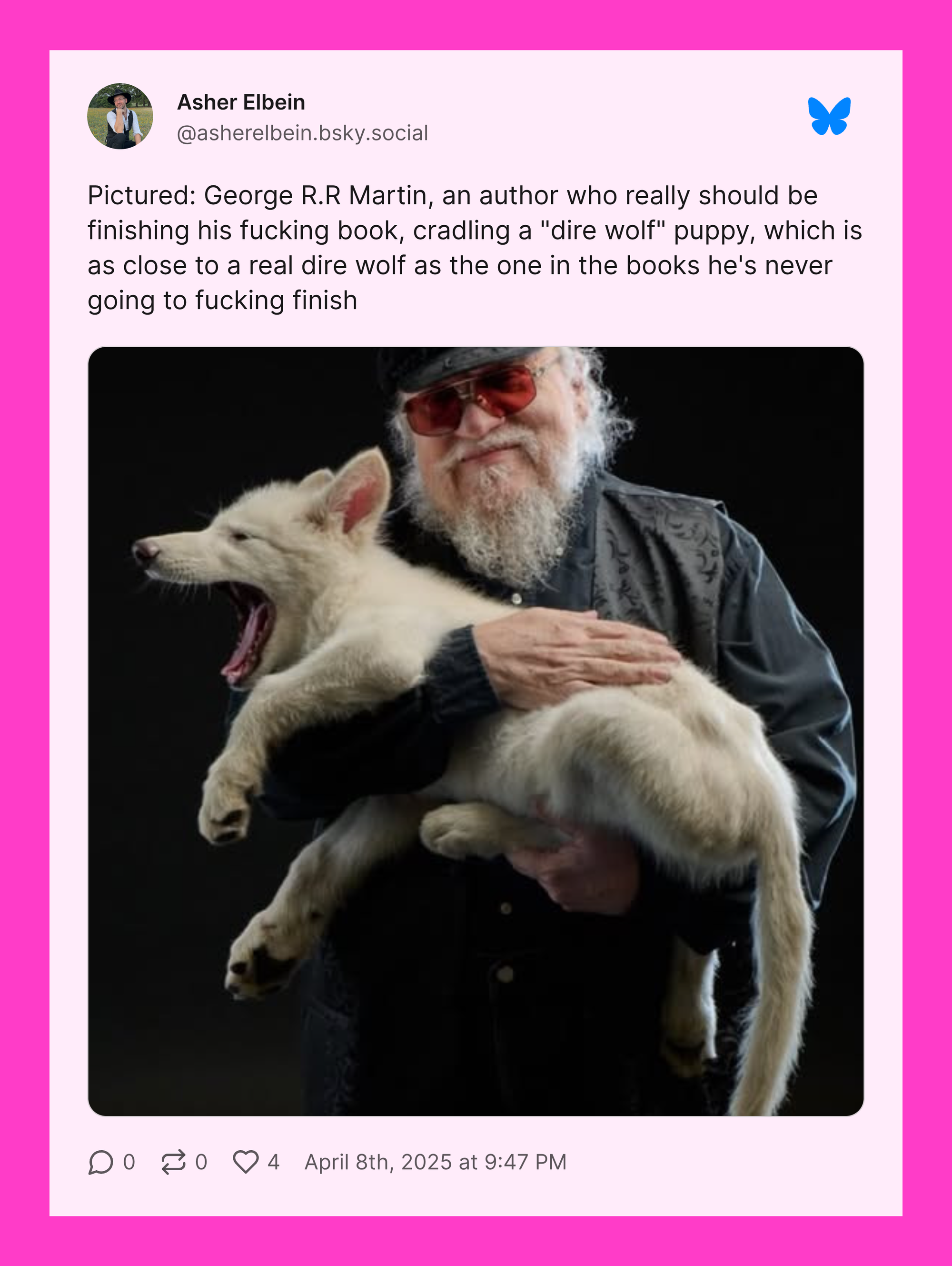 Also adding to the growing ickiness about this announcement? That revelation that Martin, whose books have been adapted into Game of Thrones and House of the Dragon, is an investor in Colossal.