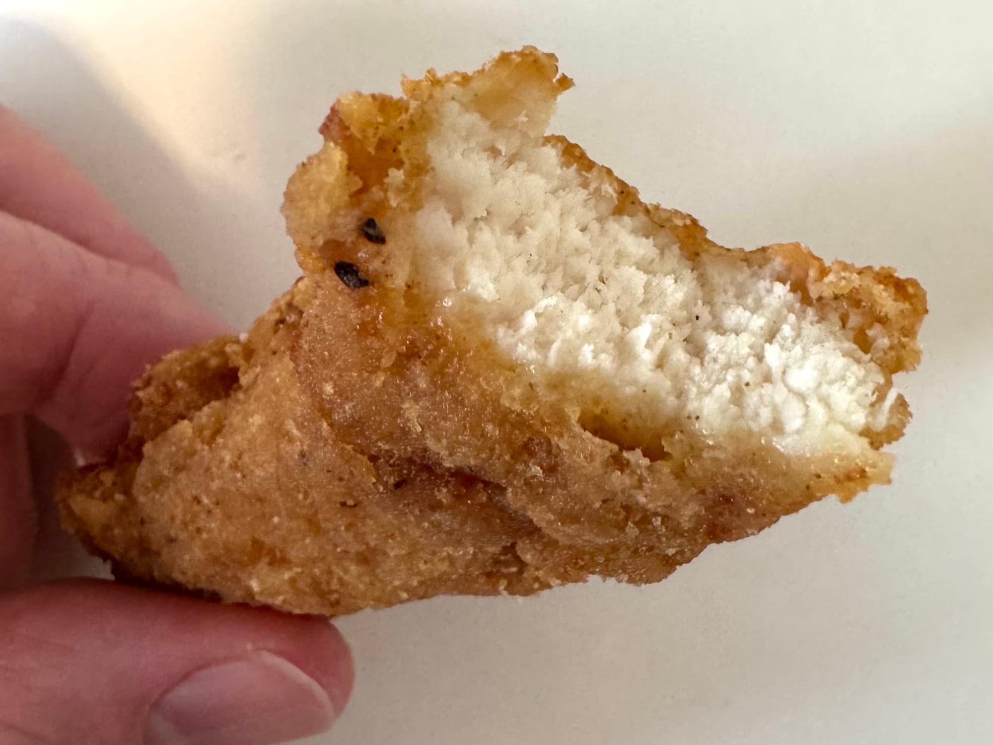 I was immediately struck by how visible the seasoning is in McCrispy Strips. McDonald’s boasts that these strips are “coated with crispy golden-brown breading and bursting with a bold, new black pepper flavor” — and you can absolutely see that black pepper.