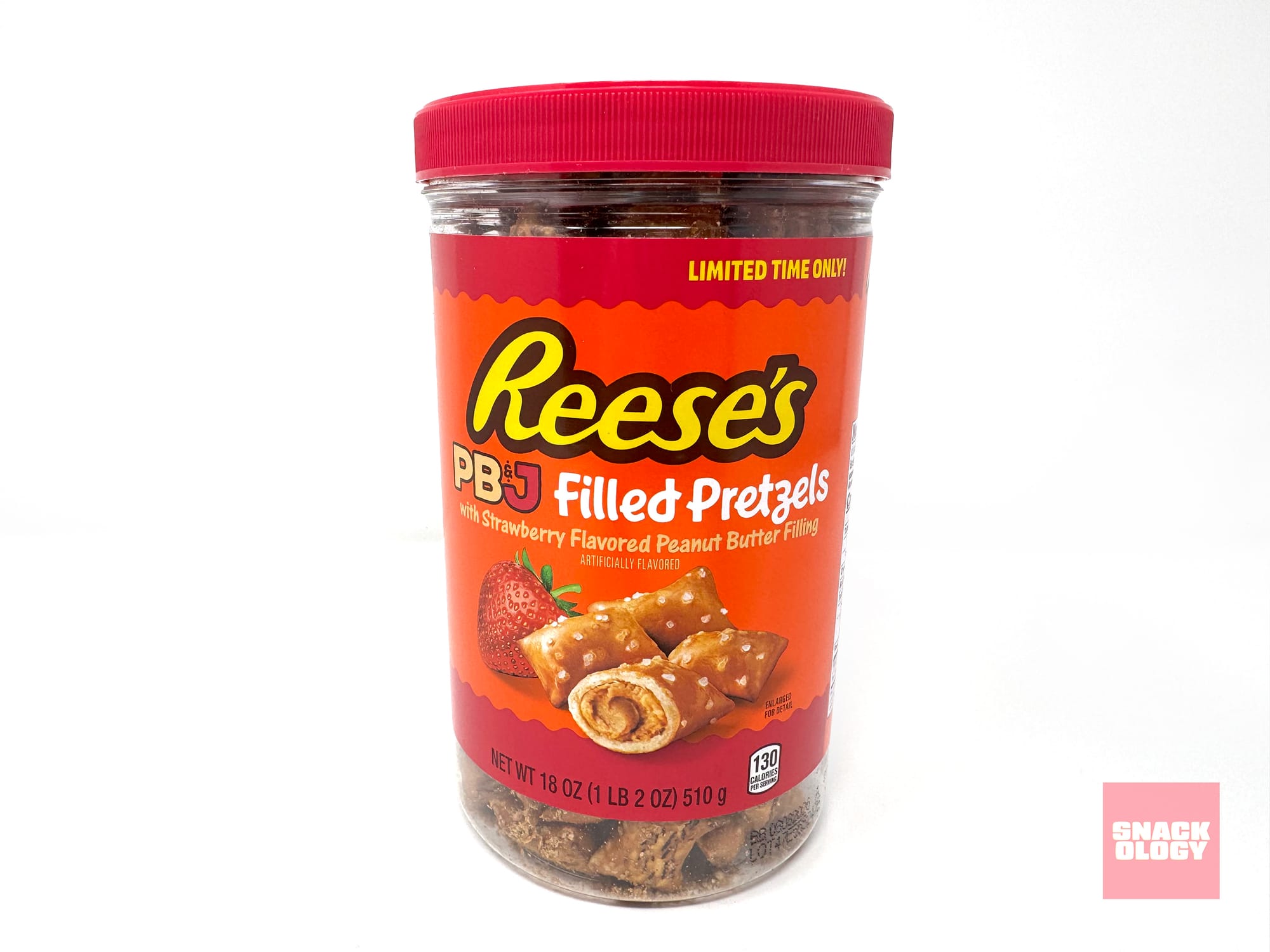 While those peanut butter cups came in both strawberry and grape, Reese’s PB&J Filled Pretzels are available only in strawberry. (I’ve also seen that the Reese’s Cups will soon be returning to stores, also just in the strawberry variety.)