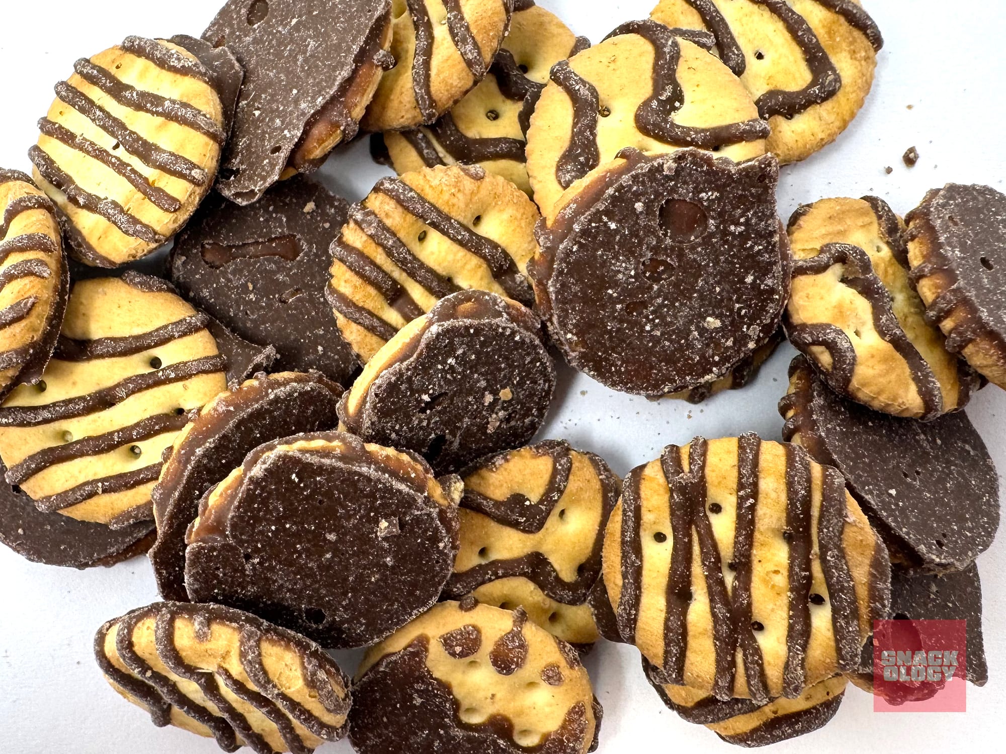 Despite it being cracker-based, Ritz Drizzled Minis Fudge also reminded me of the Keebler Fudge Stripe cookies. A bottom layer of chocolate with a decorative chocolate topping — just with some of the base sweetness swapped out for saltiness.