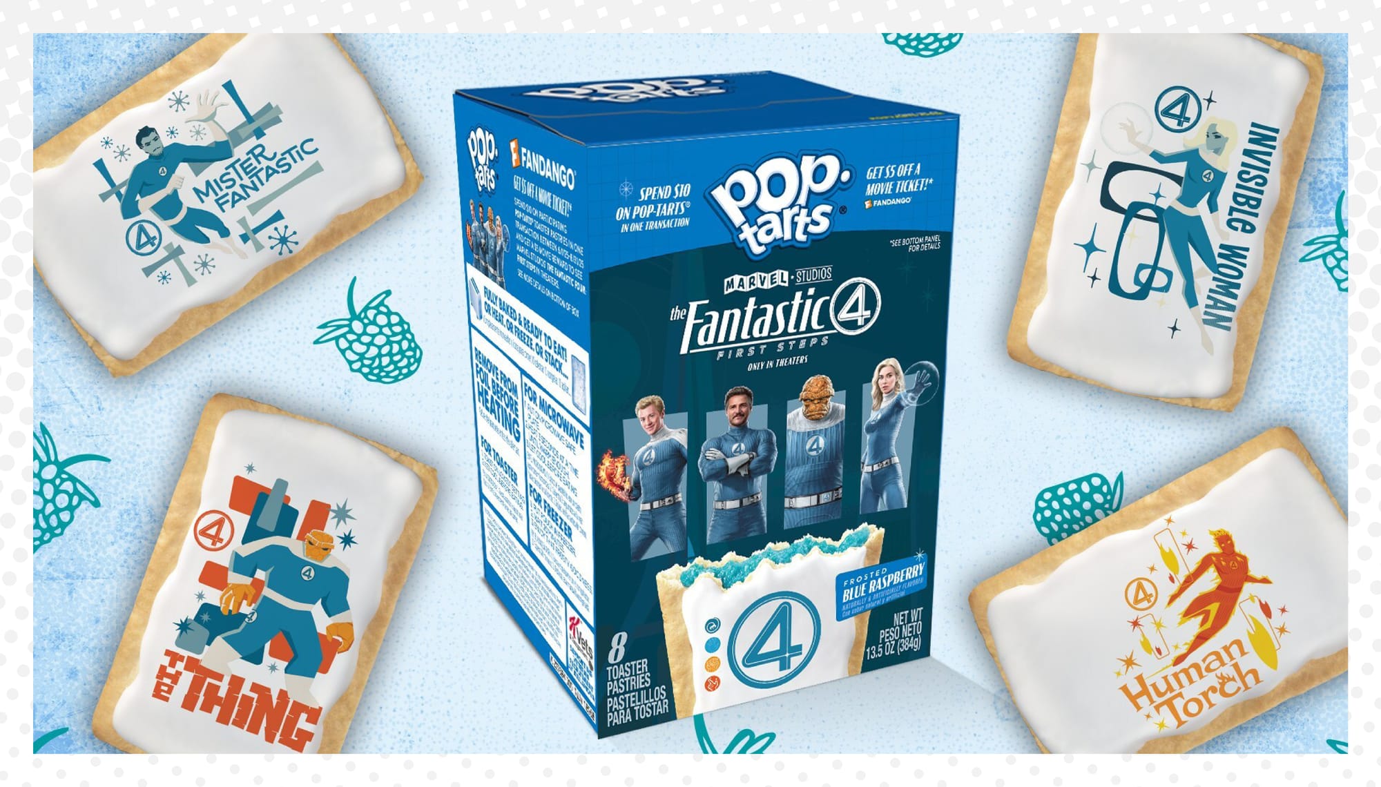 Pop-Tarts Teams Up With Marvel Studios’ The Fantastic Four: First Steps to Bring Back Fan-Favorite Frosted Blue Raspberry Flavor After Six-Year Hiatus (PR Presswire): “Fan-favorite Pop-Tarts Frosted Blue Raspberry is returning to the pastry universe — exclusively at Walmart — after a six-year hiatus. Filled with a deliciously gooey blue raspberry-flavored center, these cosmic power-inspired pastries strike the perfect balance of tangy, fruity and sweet. Each pastry features one of eight unique frosting designs inspired by the iconic Super Hero team, their powers, and more. The printed pastries will also be available in specially marked boxes of Pop-TartsFrosted Strawberry at grocery retailers nationwide.”