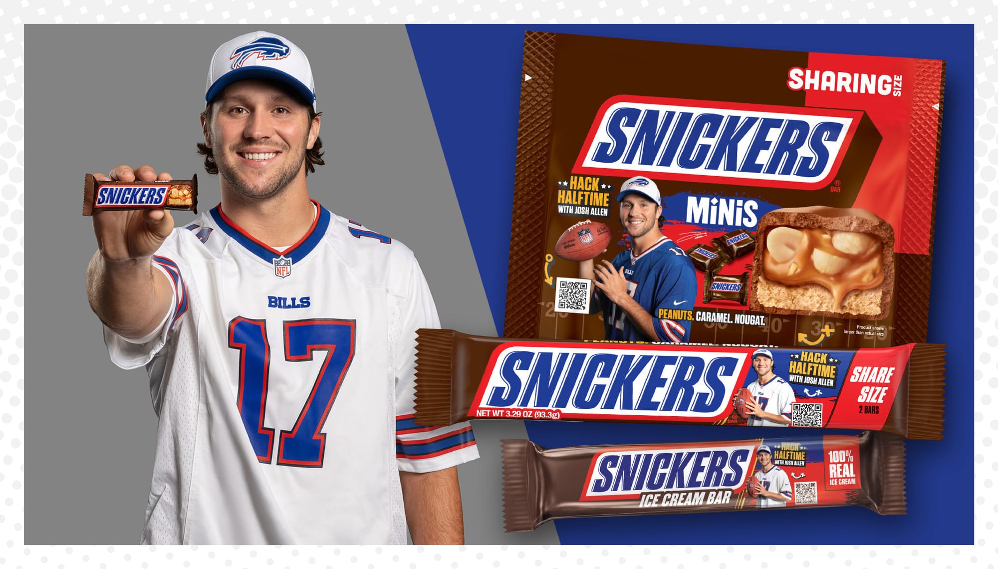 Snickers Drafts Josh Allen to Satisfy Halftime Hunger, One Bite at a Time(PR Presswire): “‘I’ve always been a fan of Snickers, so putting my name — and my game — on these packs is a win,’ said Josh Allen. ‘Whether you're taking the field or taking your fantasy line-up to victory, Snickers has your back when hunger strikes.’”
