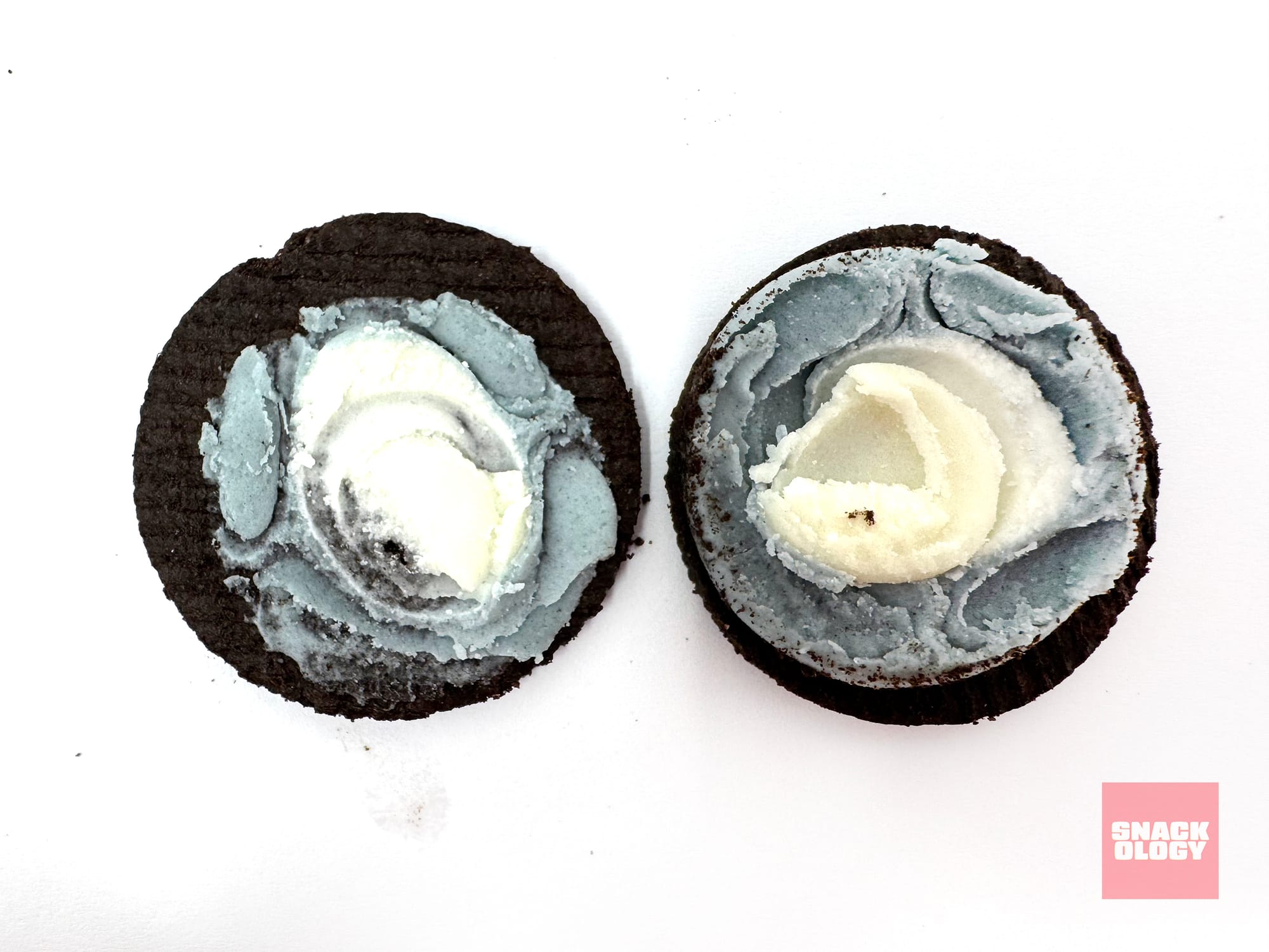 Flavor aside, though, that creme is hiding a trick. If you twist open a Marvel Oreo, you’ll find that there are two parts to it. And when you give the creme a good lick, the grayish blue mixes with the white core to create a vibrant blue. Wanna take any guesses whether or not this color-changing creme will leave your tongue and mouth blue? (Pssst, the answer is very, very, very blue.)