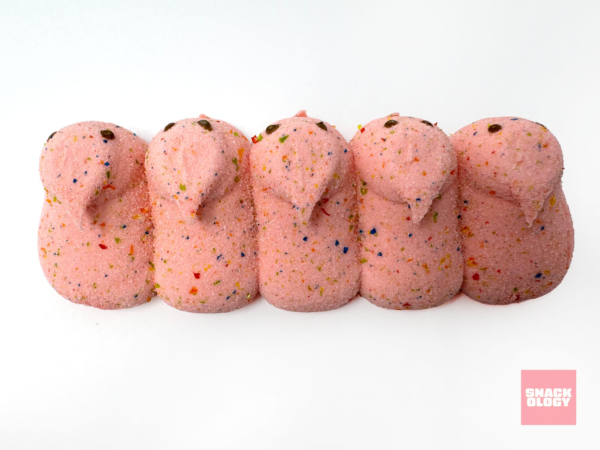 Unlike the other two Peeps in this lineup, the Pop-Tarts one uses a strawberry-flavored marshmallow base instead of relying on the coating. This means you’re getting strawberry marshmallow and strawberry sugary coating with the fun addition of rainbow sprinkles to evoke that classic frosted Pop-Tart look. (You know exactly what I’m talking about.)