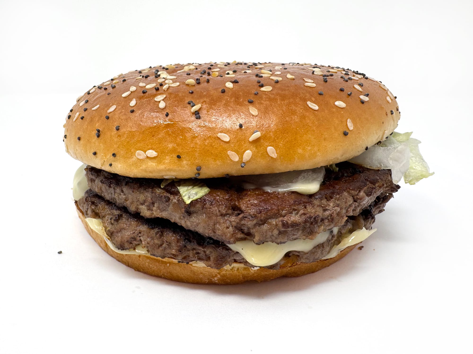 The icononic McDonald’s burger. Two all-beef patties, Big Mac sauce, an extra bun. You know the drill.