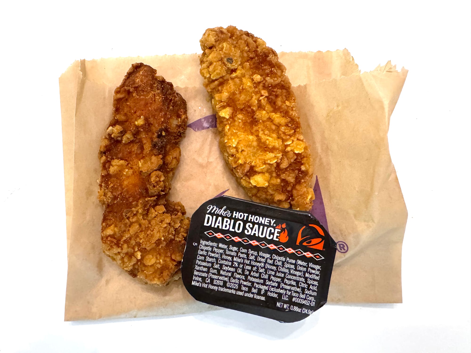 But I was a big fan of the Crispy Chicken Nuggets, ordering them several times since they came back a month or so ago, so I added a few of Taco Bell’s latest offerings — “full of flavor and unmistakably Taco Bell” — to my order and sent the Taco Bell app to work bringing the promise of some crispy chicken goodness to my house for lunch.