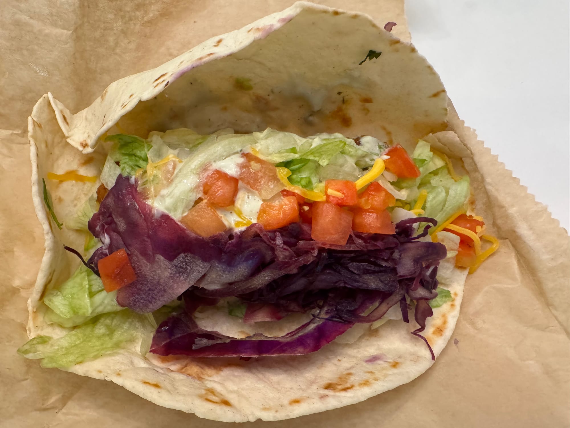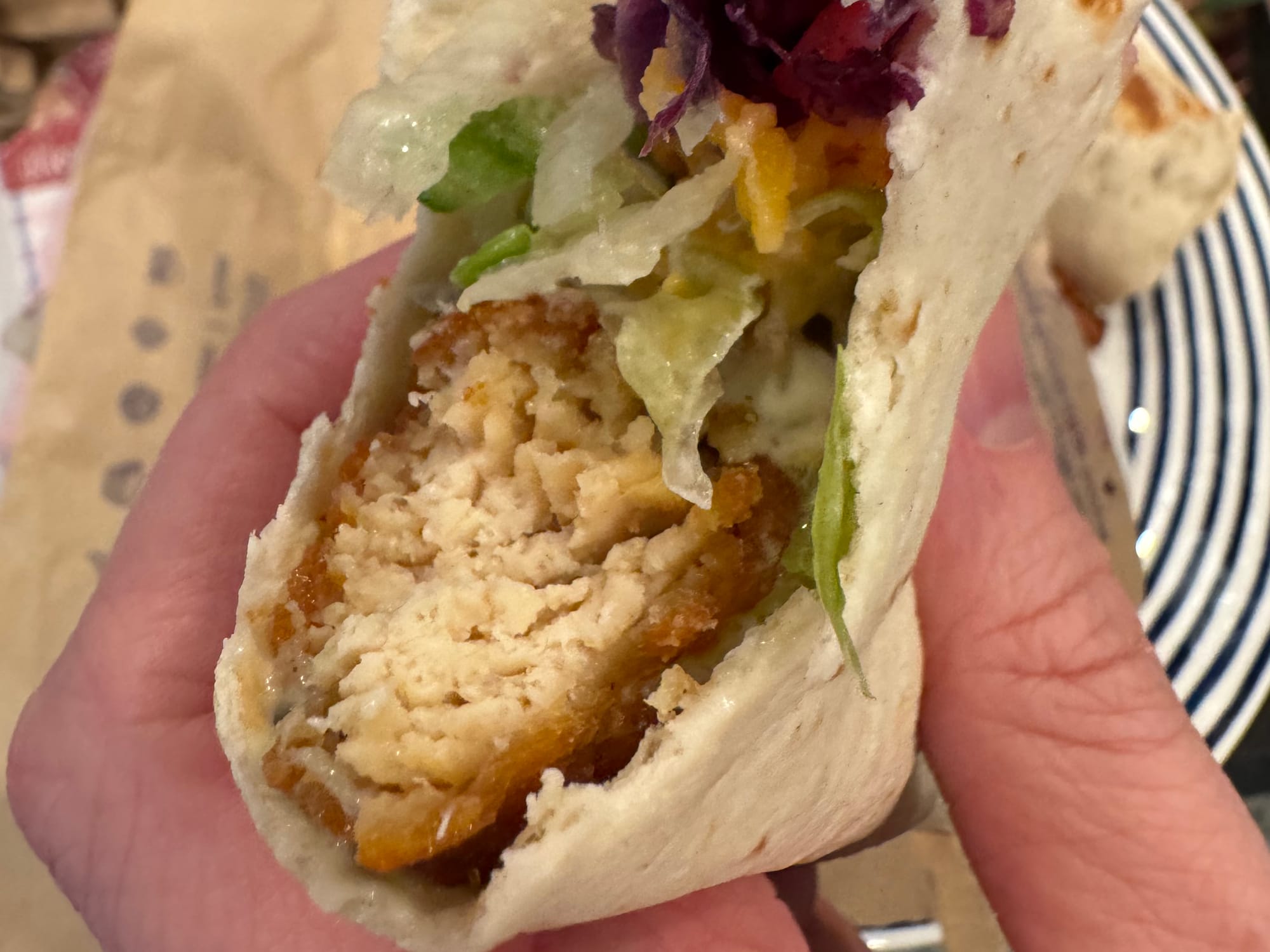 It feels weird to complain about the volume of toppings — quality toppings at that! — that Taco Bell gave me, but the chicken tender in my taco was buried. Absolutely covered by all those veggies.
